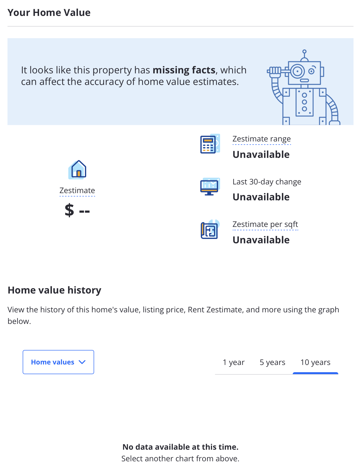 So I went to the web site and signed in and it now shows no value for my house. It said I had missing information, which I didn't. I updated the information anyhow.