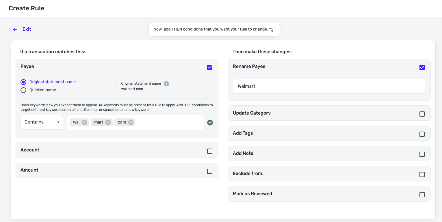 When creating a rule from the transaction register, add the ability to un-check "Update Category" like you can in the rules setup in settings. Currently I create the rule in the register and then go back into settings and un-check that.
