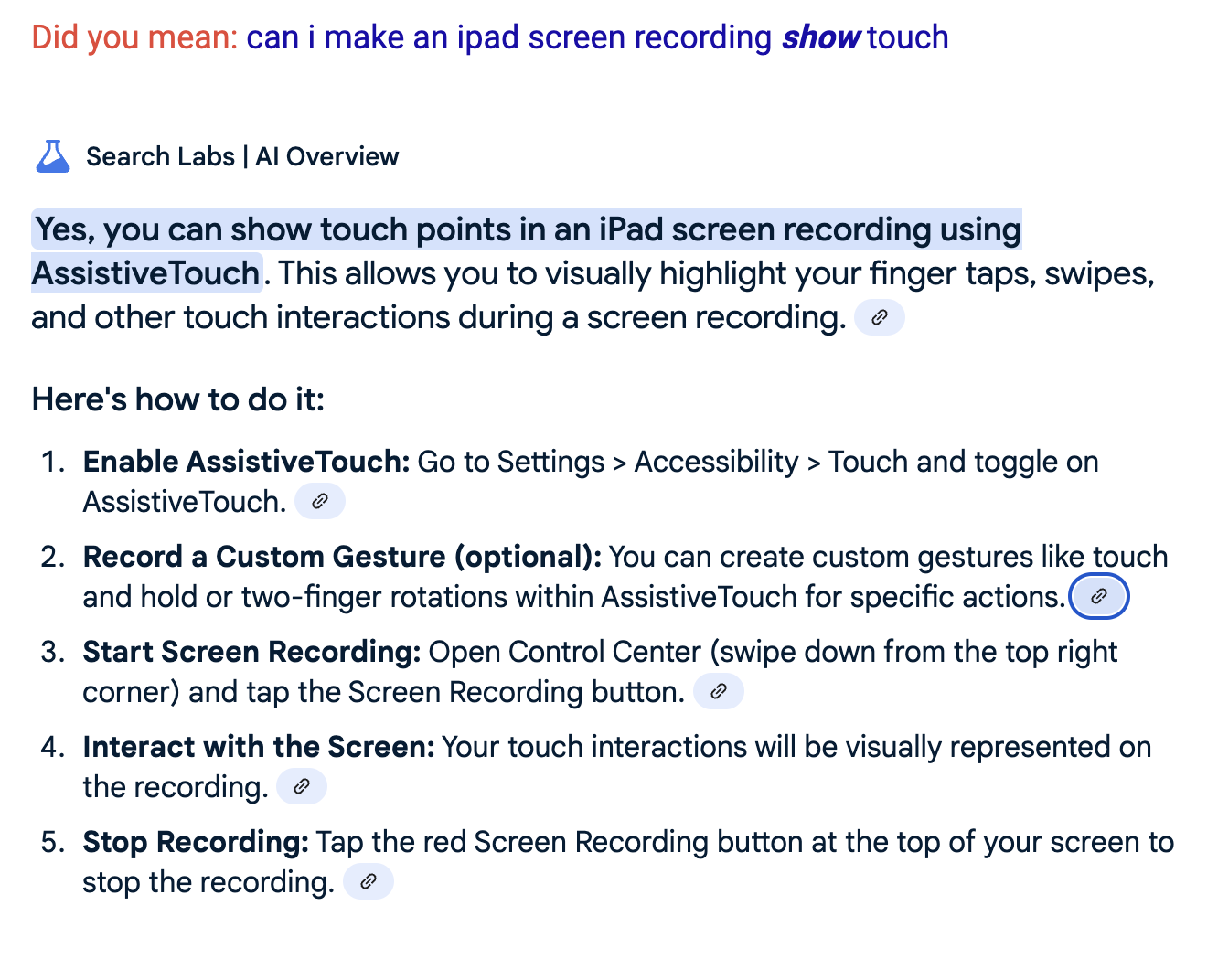 Google says there is a way to show touch in screen recordings in videos on ipad Screen Recorder. Do you want me to do this?