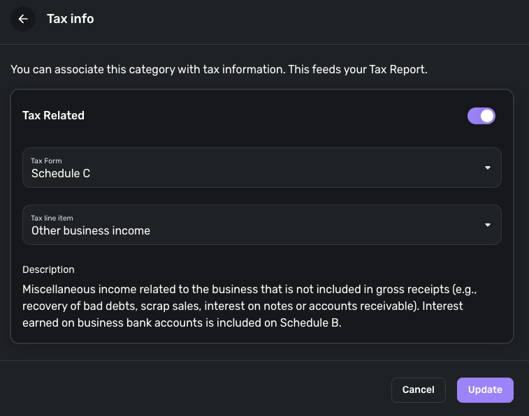 You will want to choose the 'Schedule C' Tax Form and the 'Other business income' Tax line item. Let us know if you have any further questions!