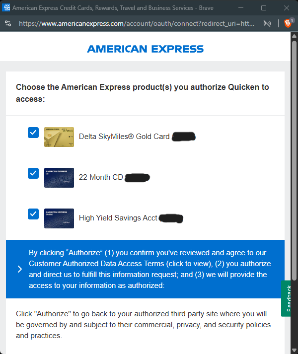 I tried this and it still only sees the Credit card and HYS accounts. There are no other manual or anything related to the American Express. It just ignores the CD even though the connector shows it as a selectable option and I have it checked.