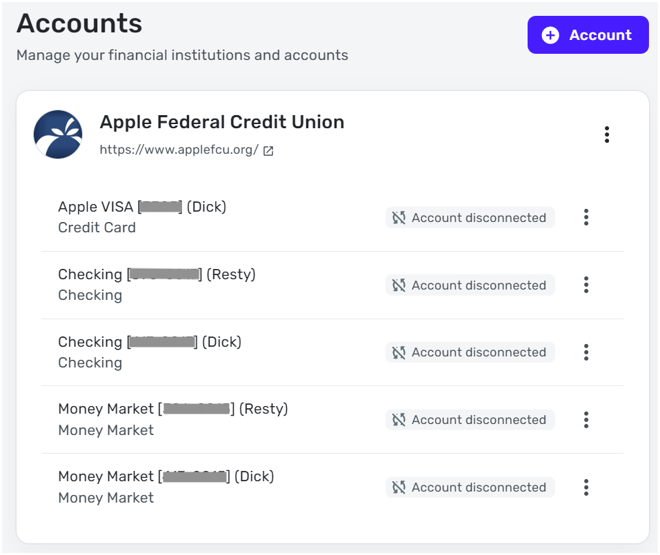 In the image attached the five (5) accounts have been disconnected from the bank. When trying to re-connect, the names of the accounts are as the bank has them not as I have them in Quicken Simplifi. During the re-connection process, if I rename the accounts will they then link up and sync correctly? What is the best approach here to change the Account names in Quicken Simplifi to be the bank account names or to change the bank account nicknames? Or is there a better way to get these bank accounts reconnected?
