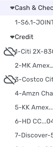 Anyways I have to put 1…4,5.. in front of accounts to get them in the order I need them and for the CC that changes based on which ones I am using for the month, that goes for categories and the spending watch list as well.