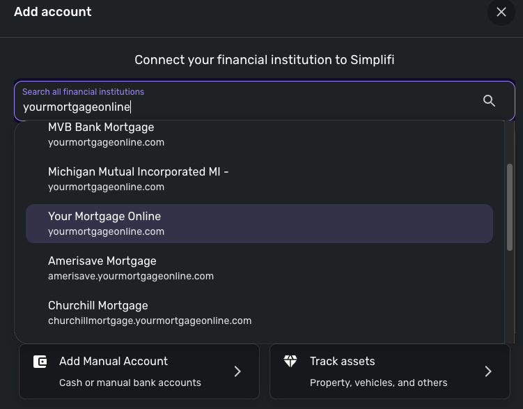 Thanks for reaching out! I did see that we do have an instance of YourMortgageOnline available within Quicken Simplifi already. Have you tried connecting using this option? Please let us know if you have!