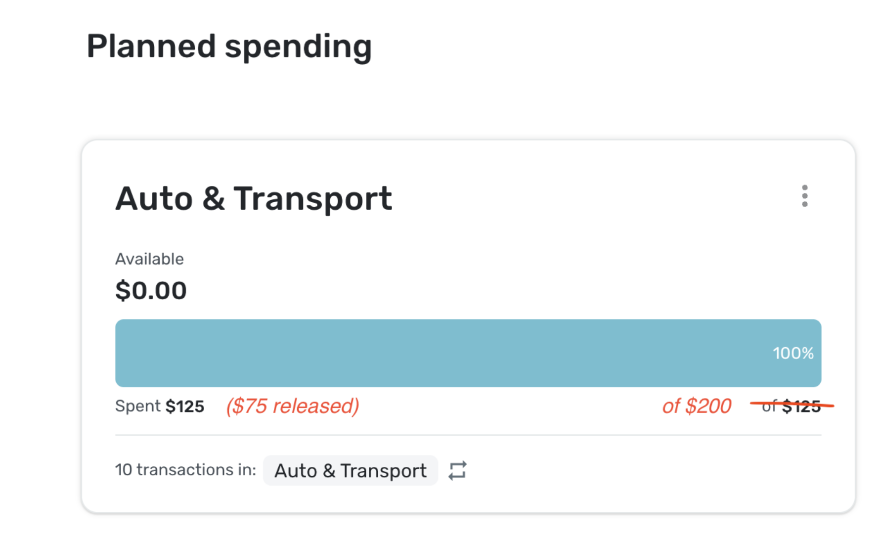 My suggestion is about changing the way Simplifi displays the spending, the planned target, and released funds in both the current and prior months so that the user can see how actual spending compares to planned spending, even when the funds have been released. Like this:
