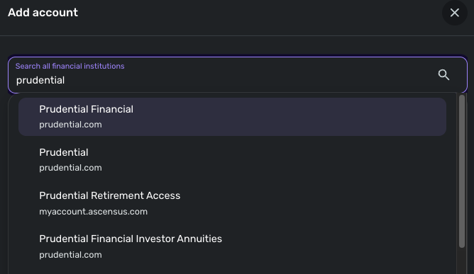 What a disappointment not connecting to Prudential. This contains 80% of my investments, and without data, Simplify doesn't add much value to my planning efforts. Please work with Prudential and fix the connection.