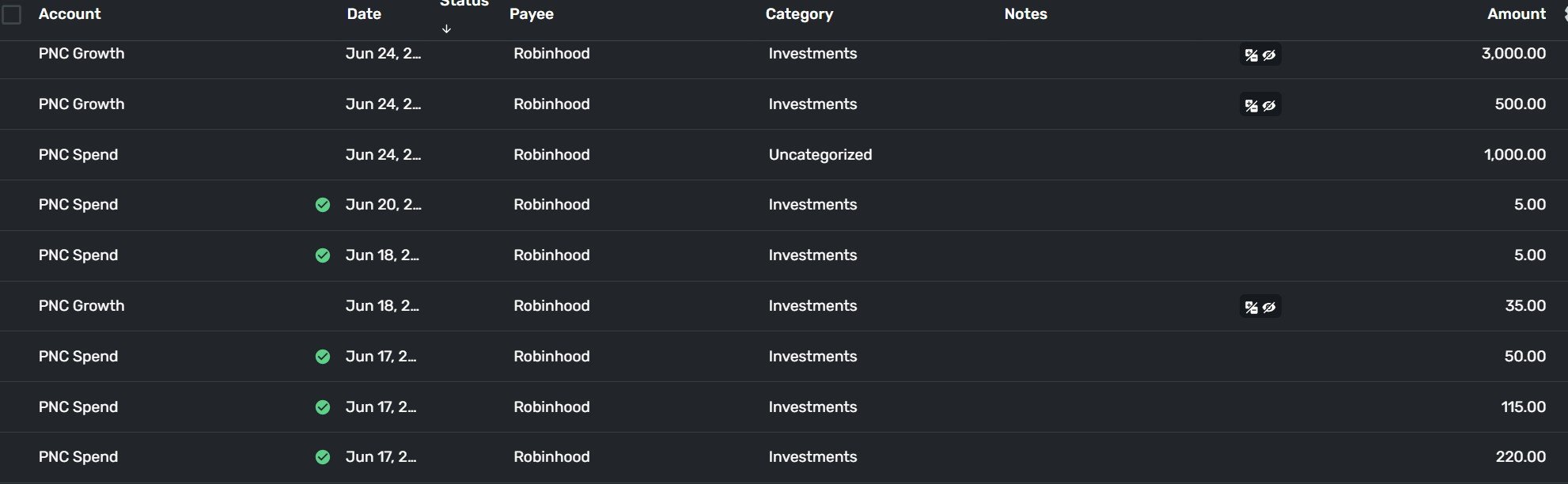 @Coach Kristina might not be totally answering your question correctly. The amount transfered from Bank or Brokerage account is showing up "correctly" as far as all the transactions are showing up. The issue comes from on the Simplifi side It doesn't show which of the several Robinhood accounts it is transfering the money into, just that ex. $5 taken from PNC Checking deposited to Robinhood generic account. Doesn' t say which RH account (IRA, Spending, Shared IRA, Investment, Managed IRA). I'm guessing the best way is to continue just categorizing as a basic transfer. Gets really convoluted and confusing as i also have TIAA accounts that aren't syncing any longer in Simplifi which is a known issue.