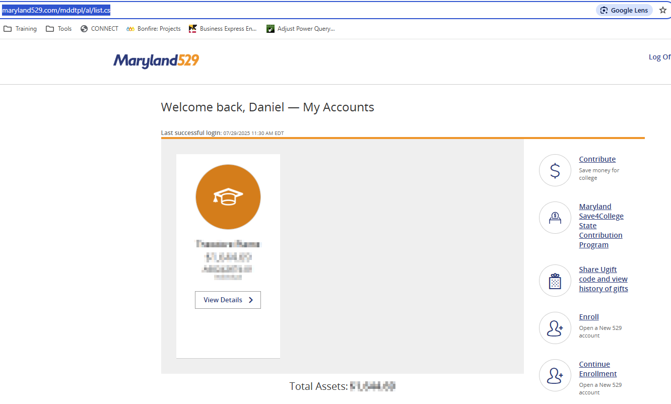 6. What is the exact web URL you see once you're signed in on the financial institution's website? https://maryland529.com/mddtpl/al/list.cs
