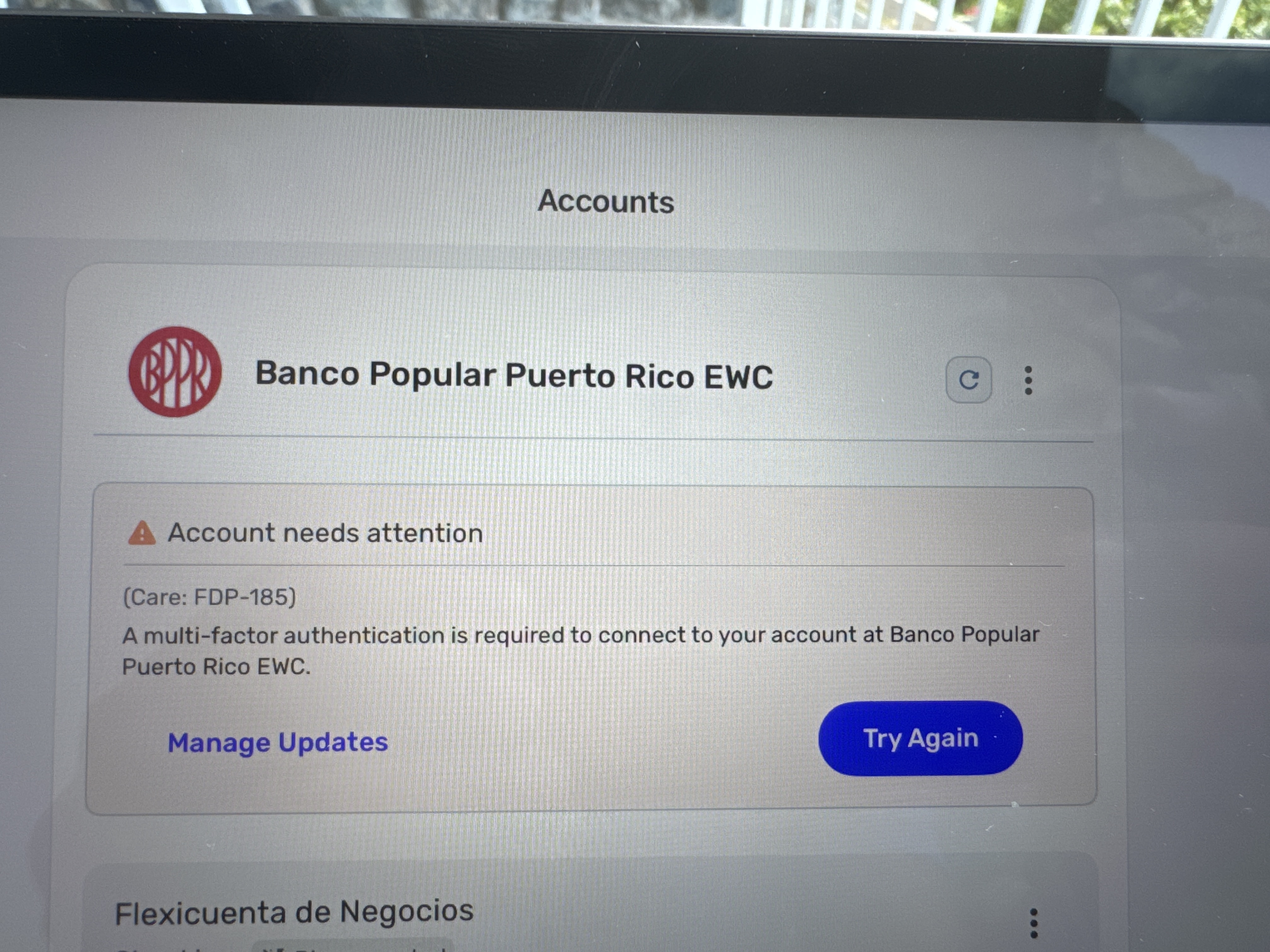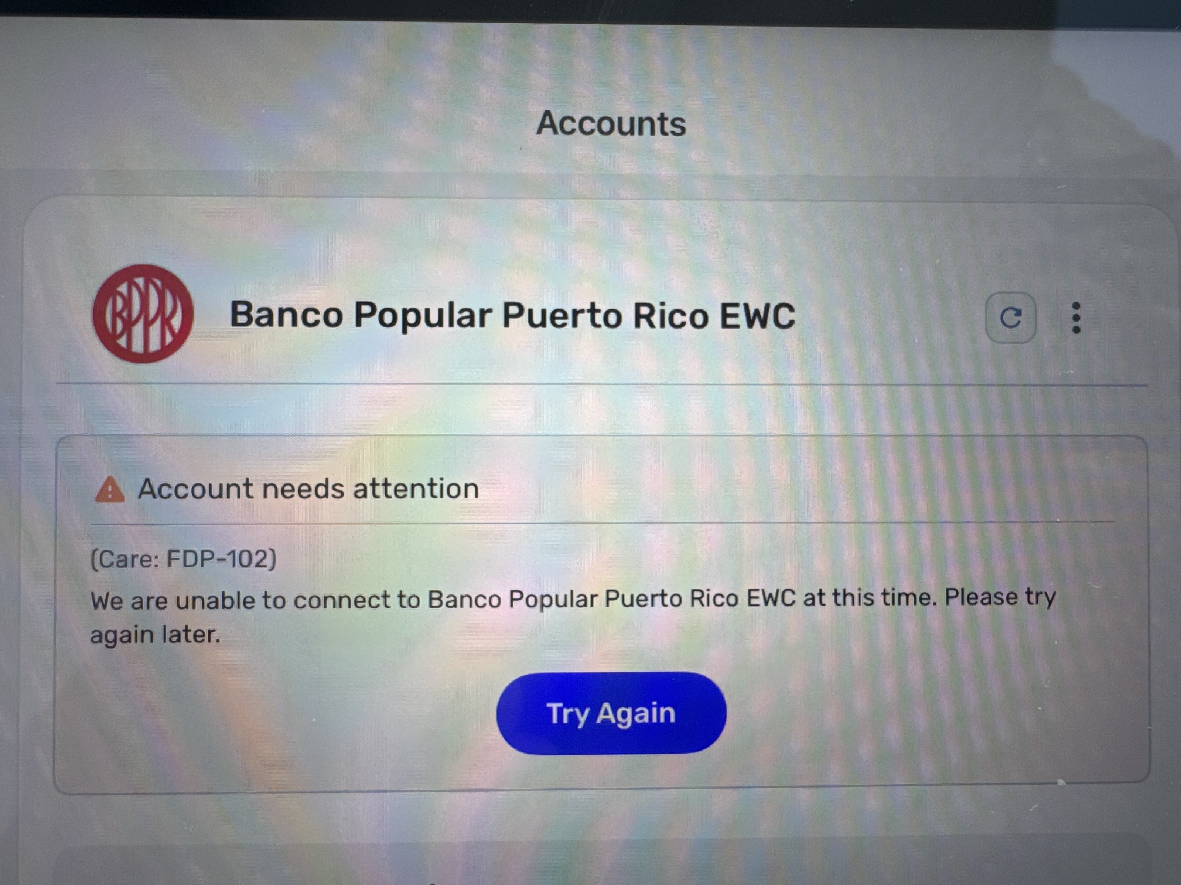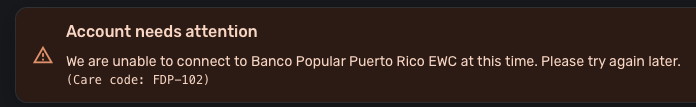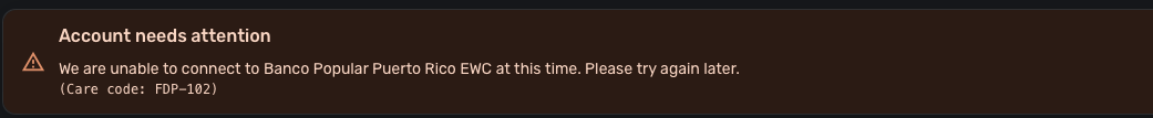 Banco Popular Puerto Rico FDP-185/FDP-102 error