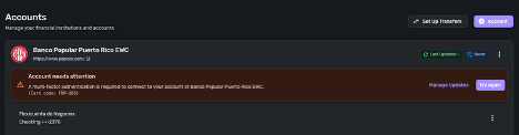 I can add the bank again but when it finished it will not display the información and always stay on Account need attention.