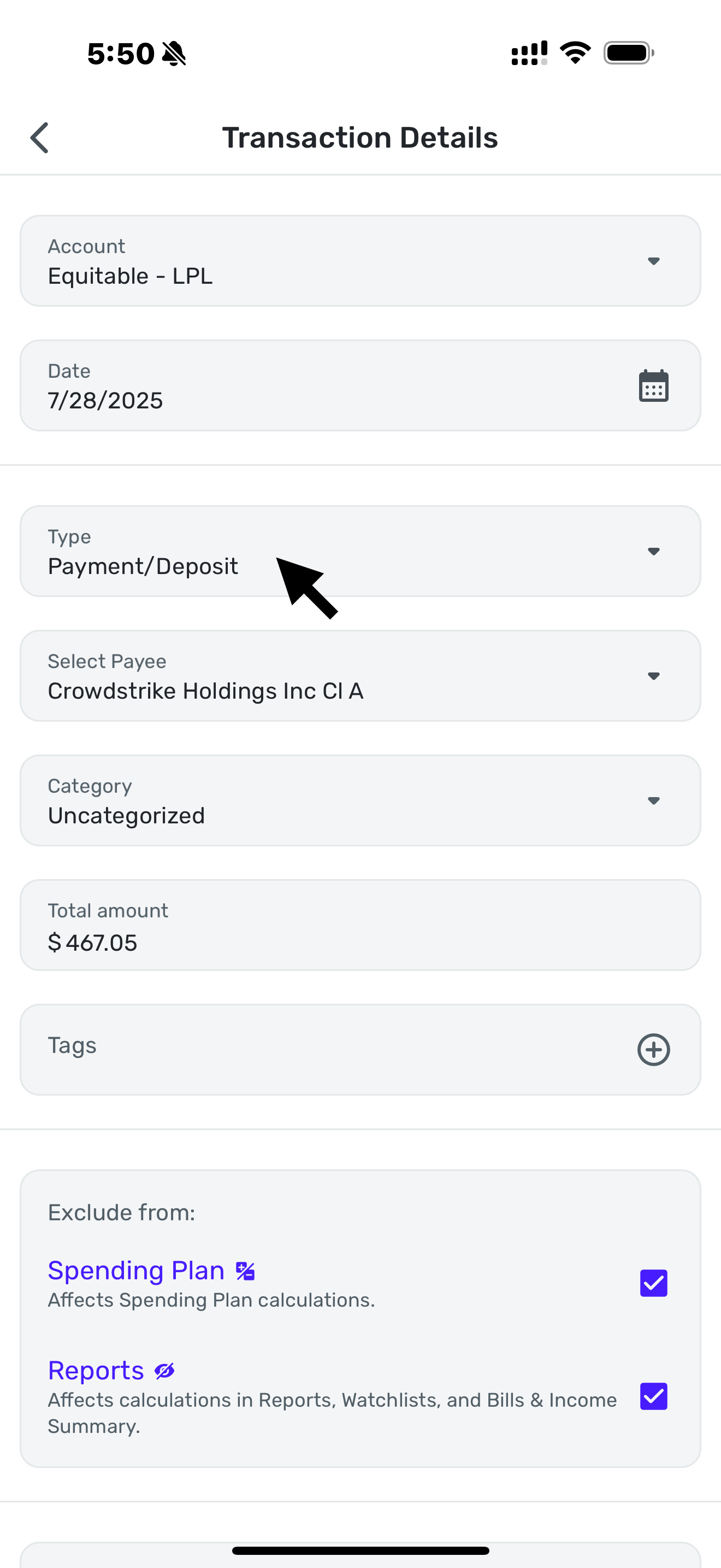 If I am looking at monthly spending on Mobile, and want to reclassify the investment transaction there, I don't see the transaction type to recategorize as investment transaction. I need to travel back all the way to the investment account and then find that transaction and only then I can fix the transaction type from Payment/Deposit to Buy/Sell. I can do that from web version though. Can the Mobile version, please, be fixed.