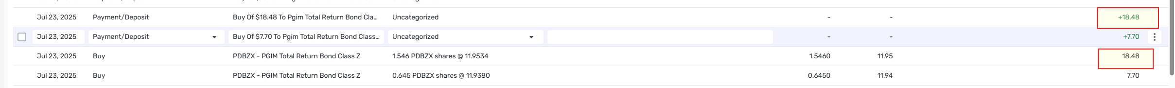 I initially thought that because of the information on the Payee field "Sell Of $0.12 To Pgim Total Return Bond Class Z." that this was the same as the Buy transaction.