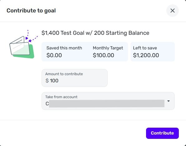 I went to contribute today for the first time since creating these NEW savings goals and it wiped out the starting amount again. This is most certainly a bug as the accounts are still "holding" the total amount in the accounts list. See screenshots. I'm using the website on Chrome, but also use the app on my Google Pixel 7.