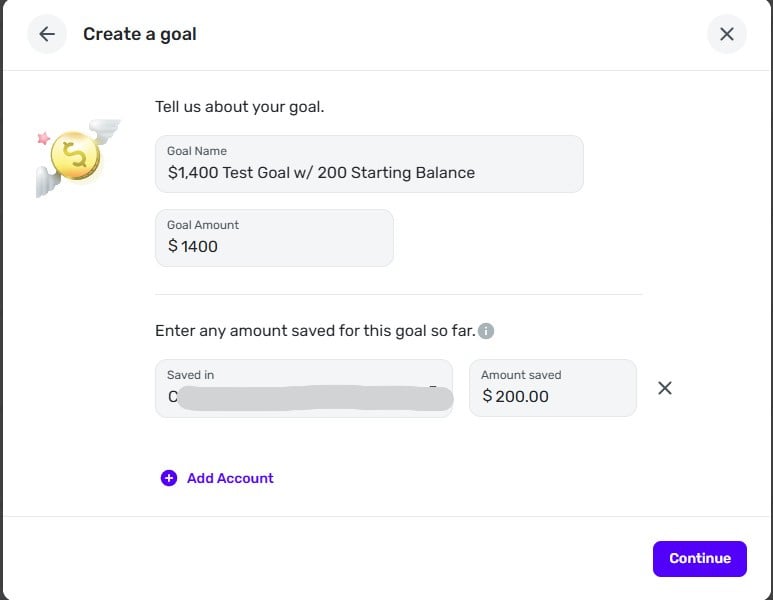 I'm confused how the starting amount of a savings goal is supposed to work (or I am experiencing a bug).
