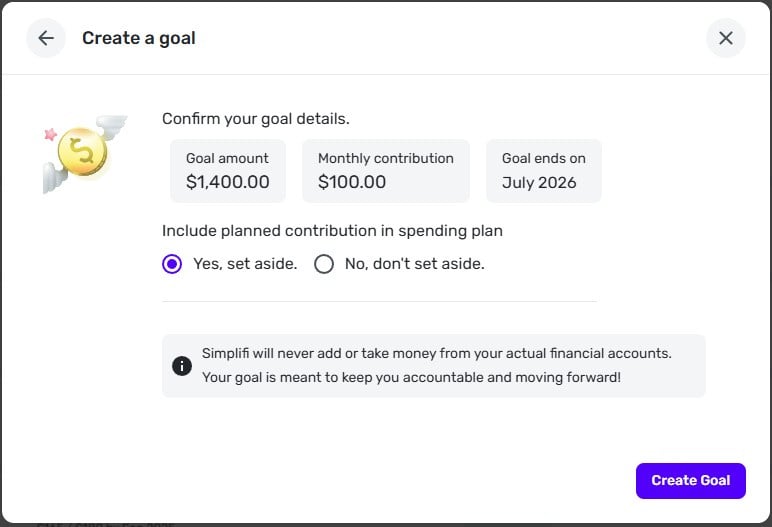 Here is our article on Savings Goals, in case it's insightful at all: https://support.simplifi.quicken.com/en/articles/3676756-using-quicken-simplifi-s-savings-goals