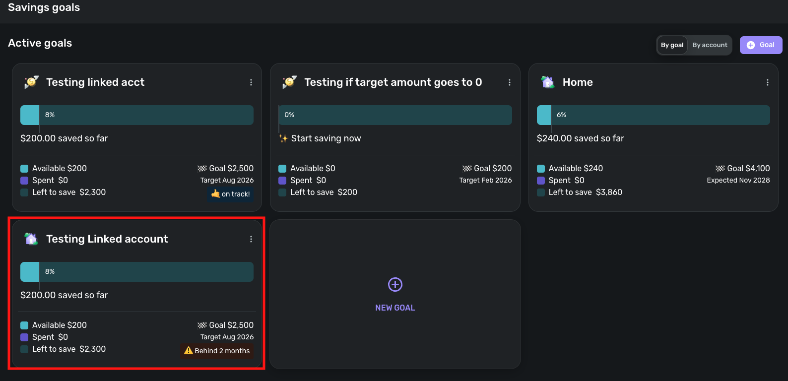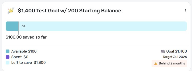 New Savings Goal with saved so far amount shows "behind" after contributing (edited)