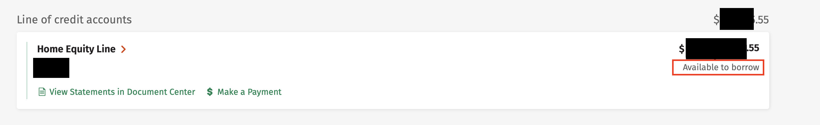 Citizens Bank Home Equity Line of Credit shows available credit as balance and it's negative