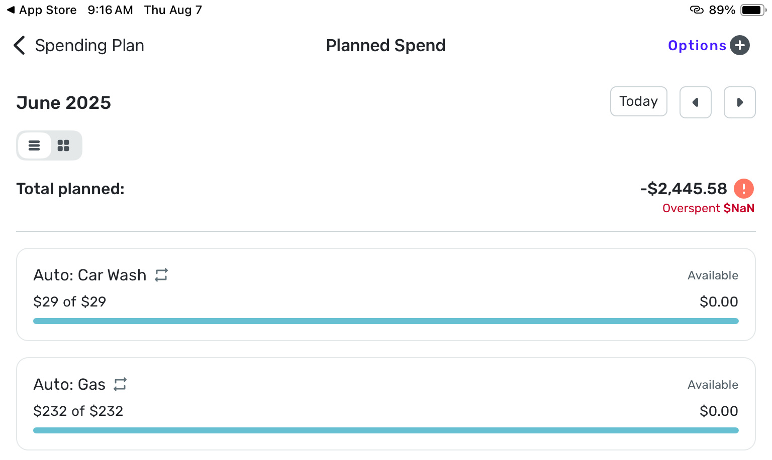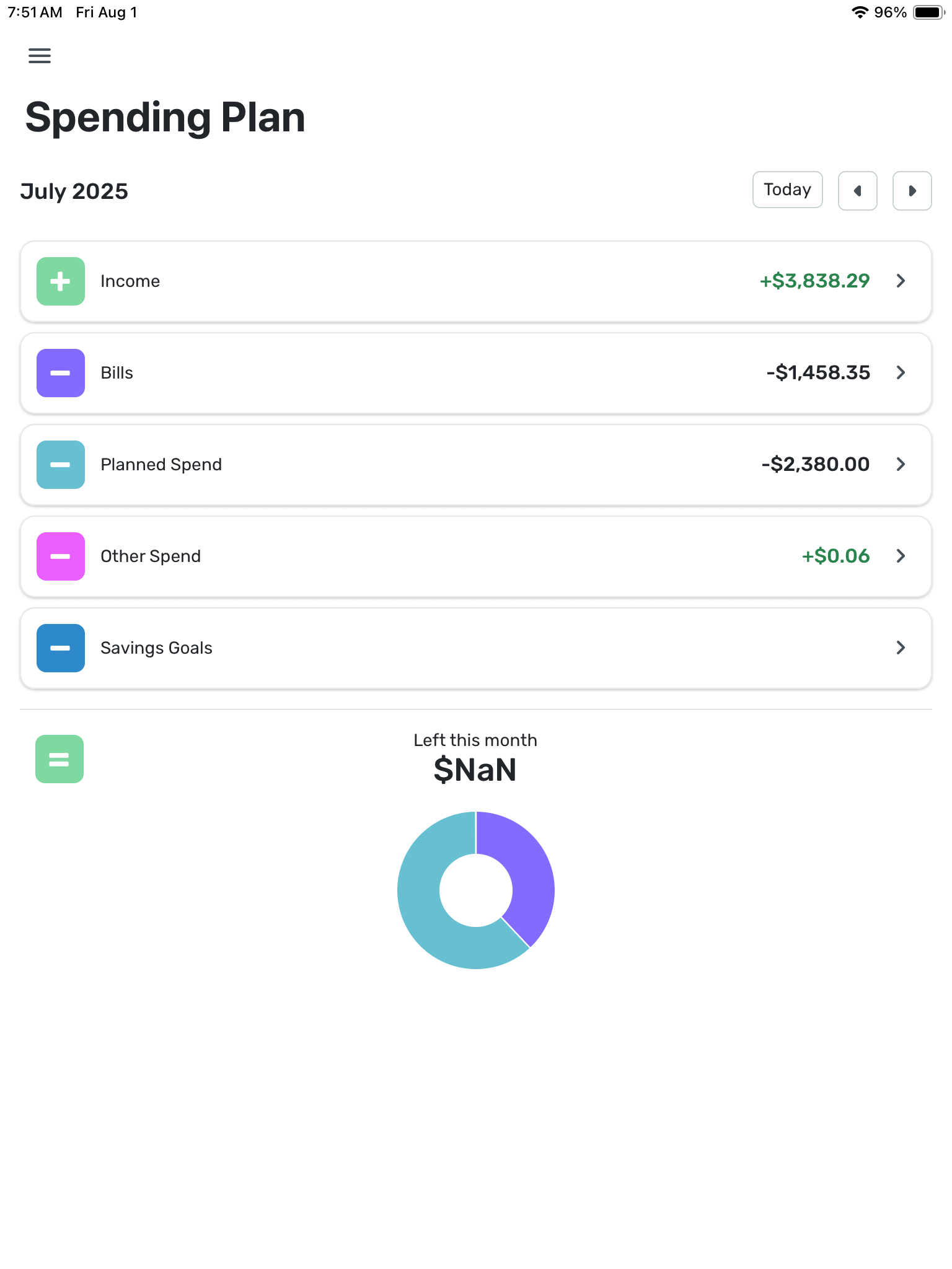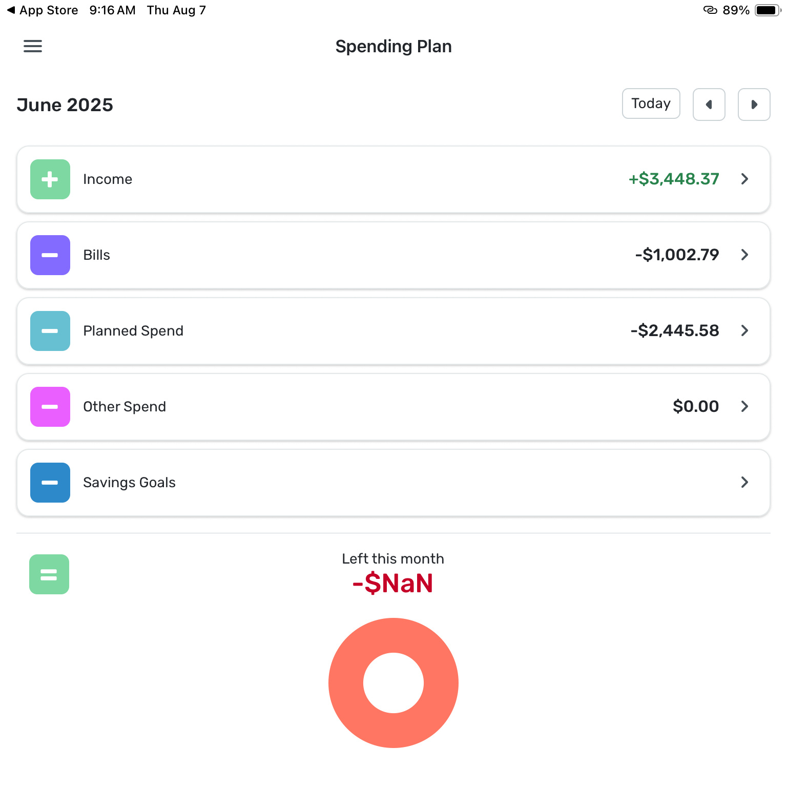Currently, I do not see NaN in the “left this month” section even though I see it again in the same place as my earlier screenshot. This instance seems like it was triggered by me “editing this month’s expense” amount.