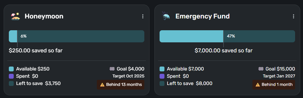 New Savings Goal with saved so far amount shows "behind" after contributing (edited).