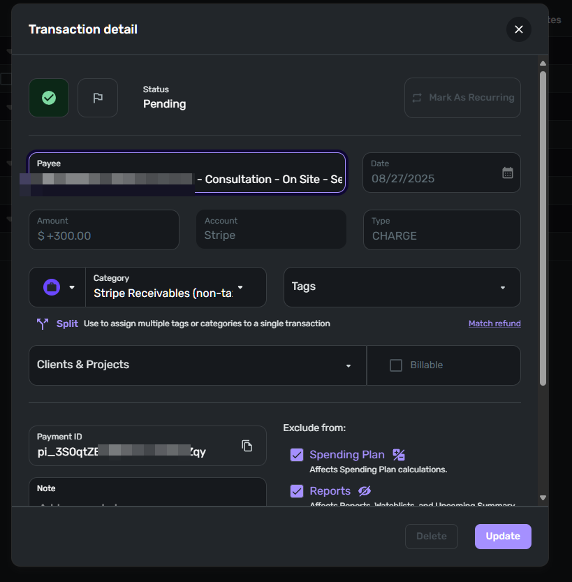 Per the title, I have a Stripe incoming transaction stuck on Pending. This amount is a payment collected by Stripe, 8/27