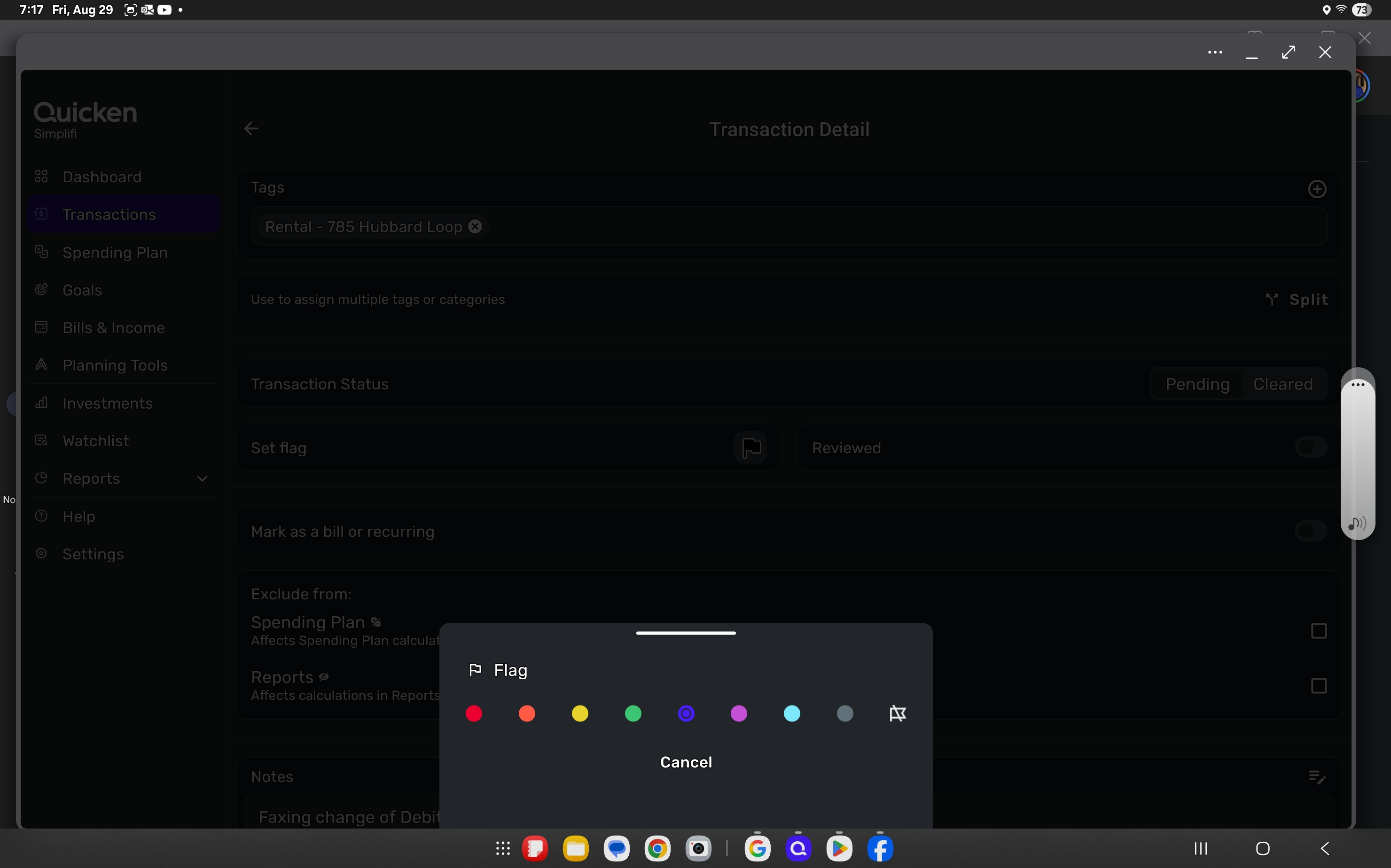 I was also not able to reproduce this issue from my side either. You mentioned this was happening on both your tablet and phone. Can you provide a screenshot showing what the flags look like on your phone's Quicken Simplifi mobile application as well? This may be specific to your dataset for some reason.