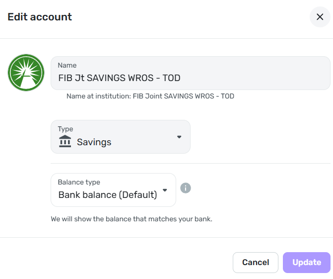 The Brokerage account is in Simplifi as a "Savings Account" because this is how we use this particular brokerage account.