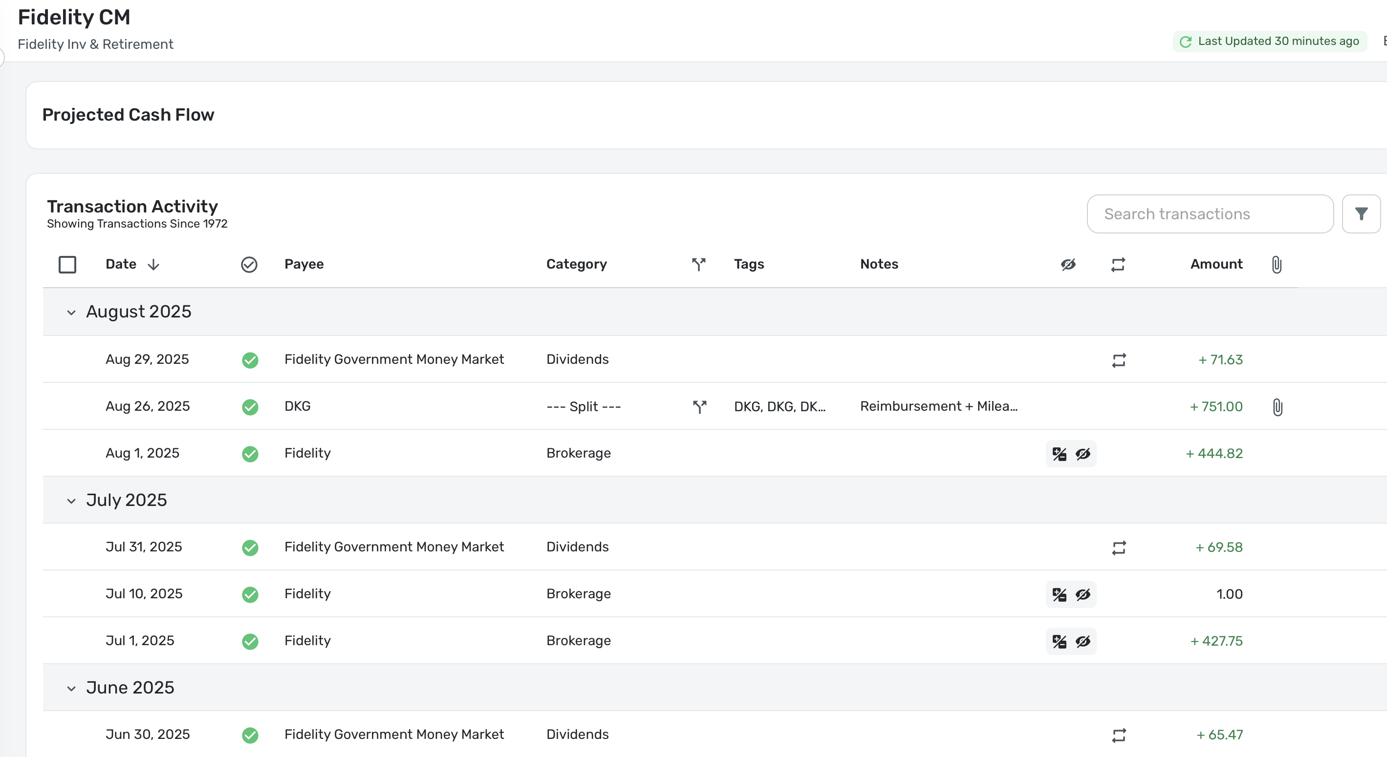 @SRC54 I edited the "Savings Account" in Simplifi to show that it is a brokerage account to match the account type at Fidelity. The difference is huge and immediate. Since all my deposits go into the brokerage account I no longer have any income showing in Simplifi! I see what you are saying that I can manually reclassify each transaction manually, which is now my only option to show any transactions on a Report.