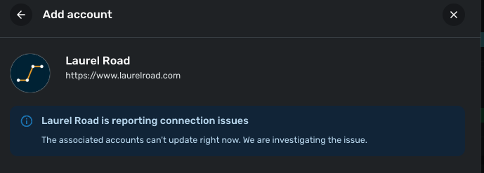 We are currently investigating this issue. In the meantime, I would keep trying to connect every once in a while and be sure to look out for when that banner is removed. You can track the account manually by adding manual transactions, which will keep your records up-to-date. Here are the steps to do so: Managing Transactions in Quicken Simplifi | Quicken Simplifi Help Center