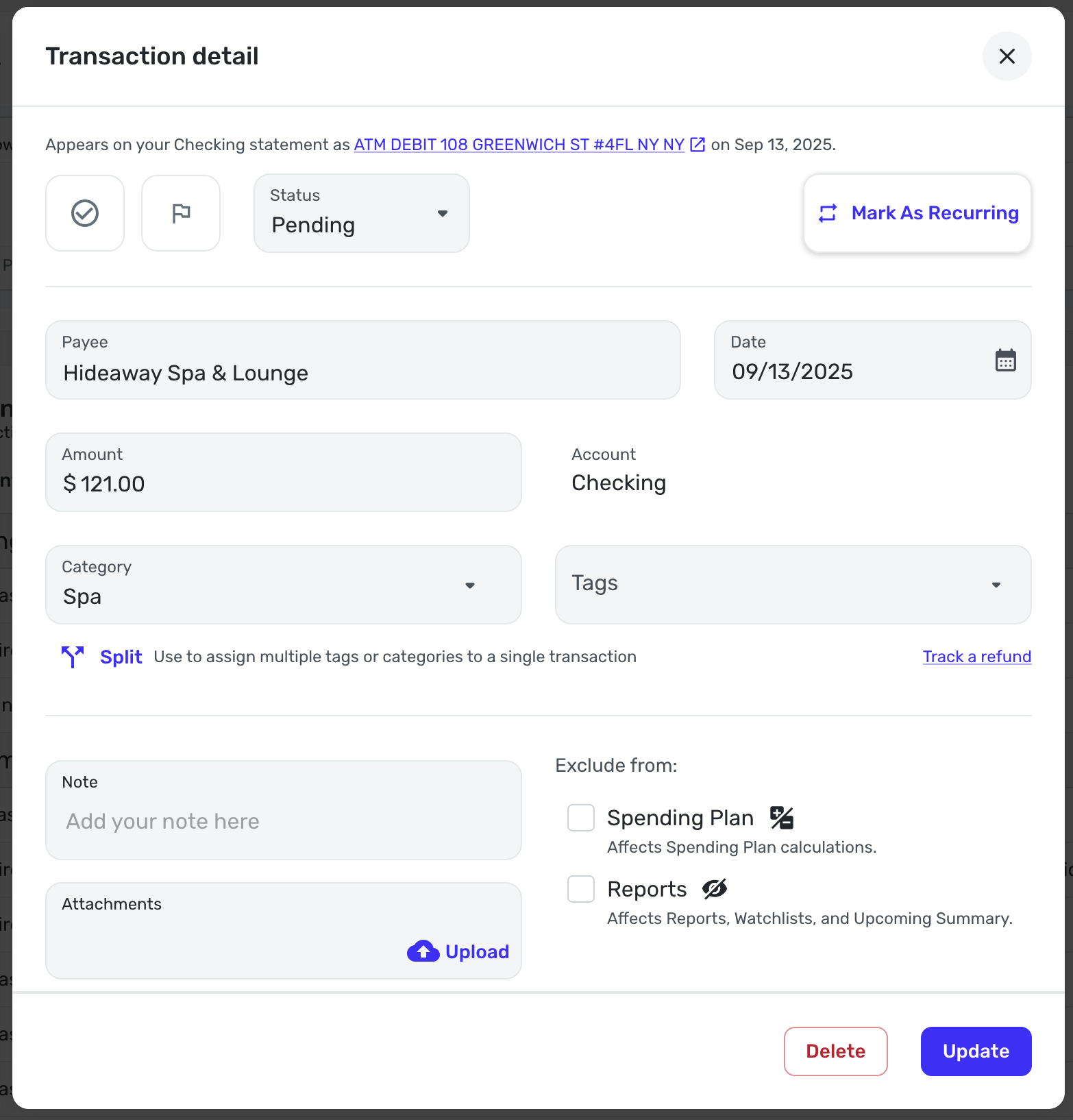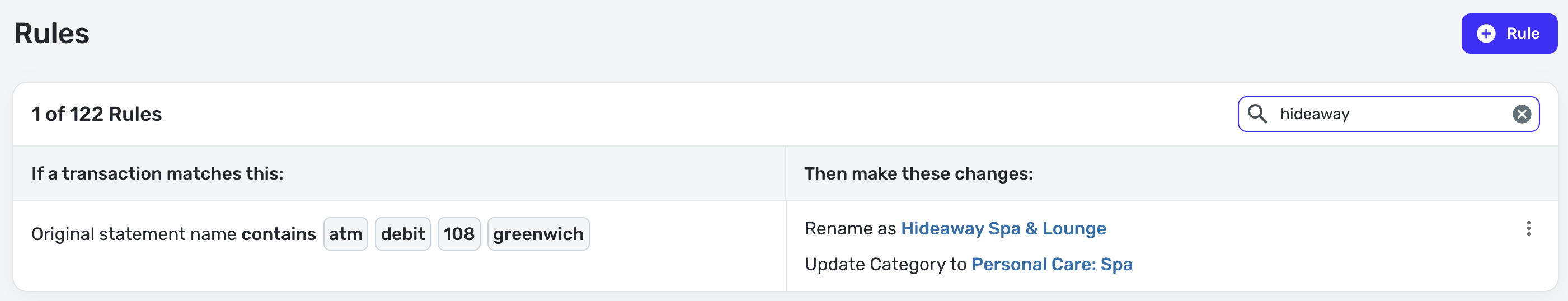 For example, there is a spa that I go to nearby, and I pay with my debit card. The transaction shows up as an ATM withdrawal. I have a rule set on the payee name to change the name and categorize it as "Spa".