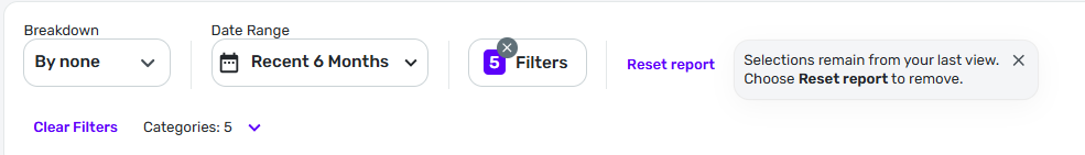 The filter goes back to what it was before I cleared it, but the date range remains at Recent 6 Months.