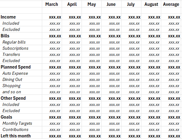 It would be helpful if there were a report that showed the Spending Plan results for the last "X" completed months in columns side-by-side.