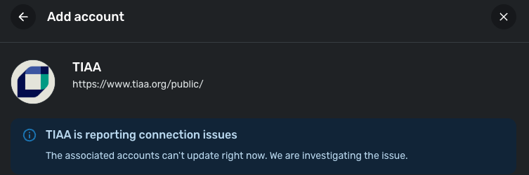 I would keep trying to connect every once in a while, and an eye out for that banner to disappear. In the meantime, you can track the account manually by adding manual transactions, which will keep your records up-to-date. Here are the steps to do so: Managing Transactions in Quicken Simplifi | Quicken Simplifi Help Center