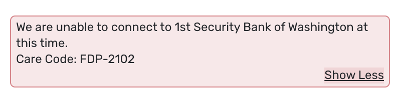 I'm getting code FDP-2102 when attempting to add a fresh connection to First Security Bank of Washington (fsbwa.com). They recently changed their online banking platform.