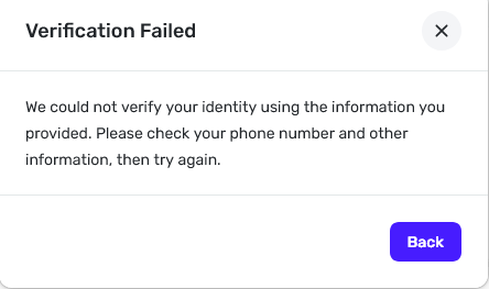I click the "Get Started" button, enter all the requested information, but I get an error message saying the "Verification Failed." Please see the screenshot below: