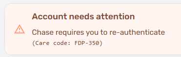 Chase Bank (Amazon credit card) failing to re-authenticate connection FDP-350 (edited)