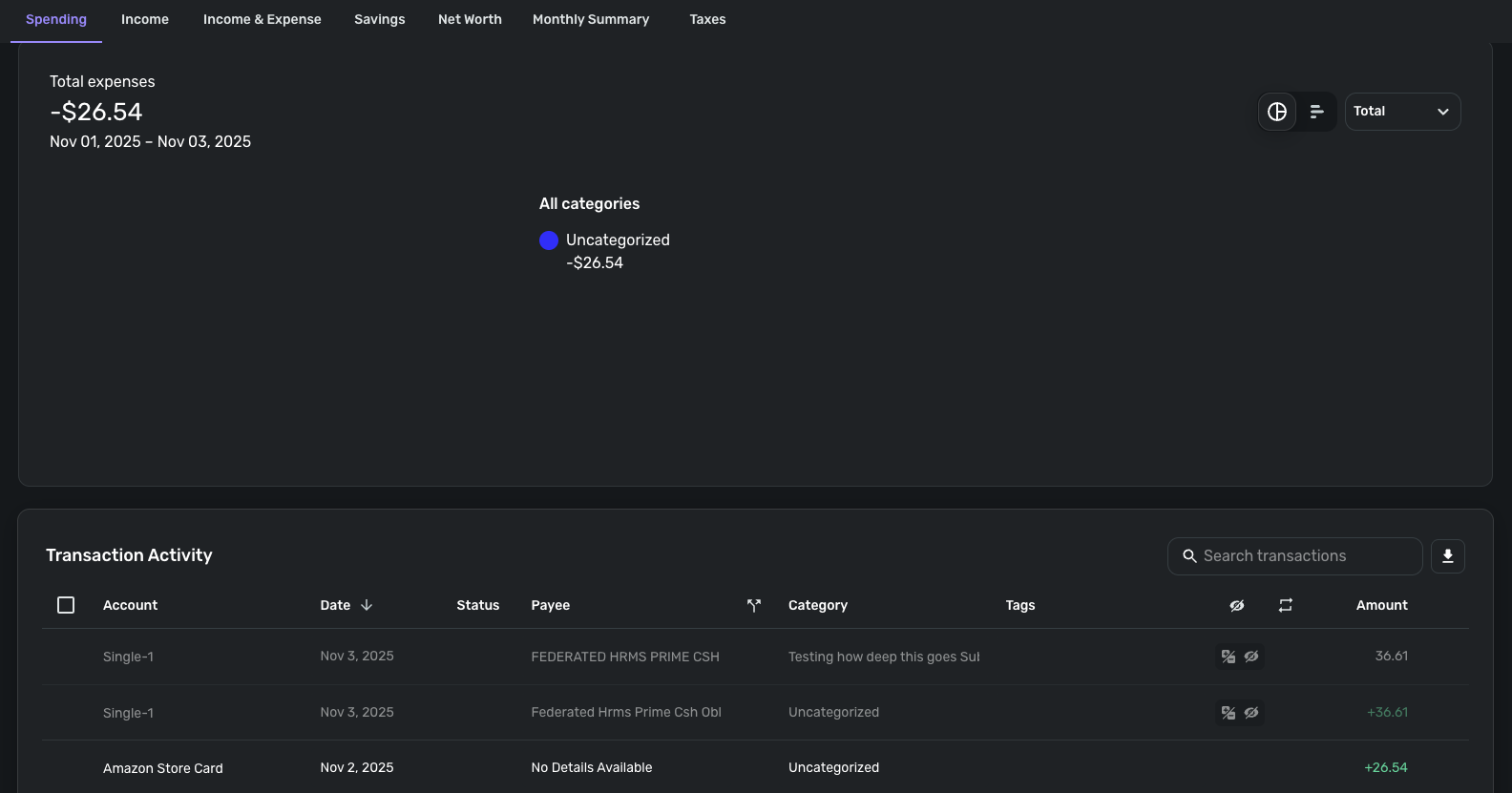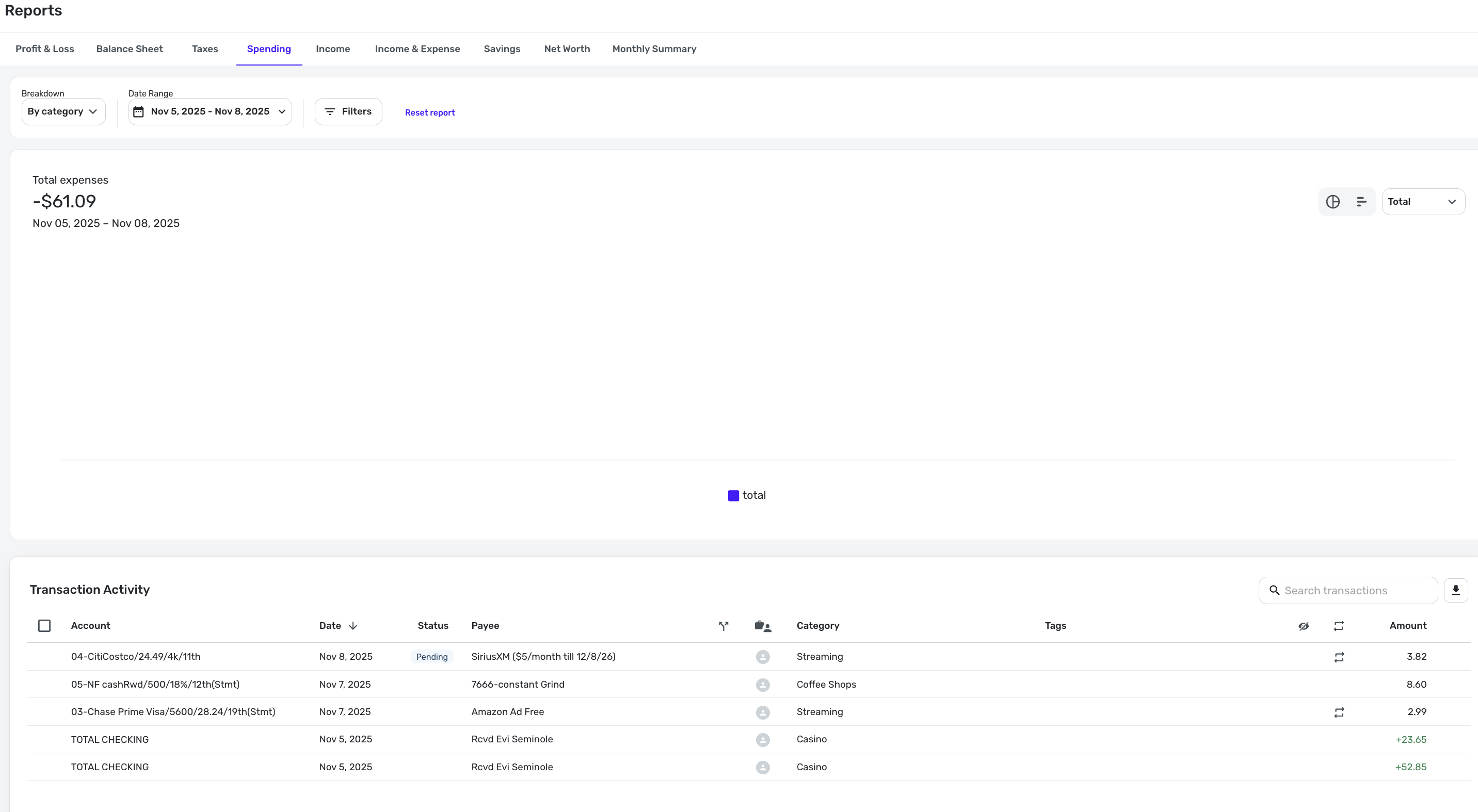 For the 4 day spending graph, Nov. 5-8, when there were 5 transactions seen at bottom (some positive, some negative), the spending chart is missing.