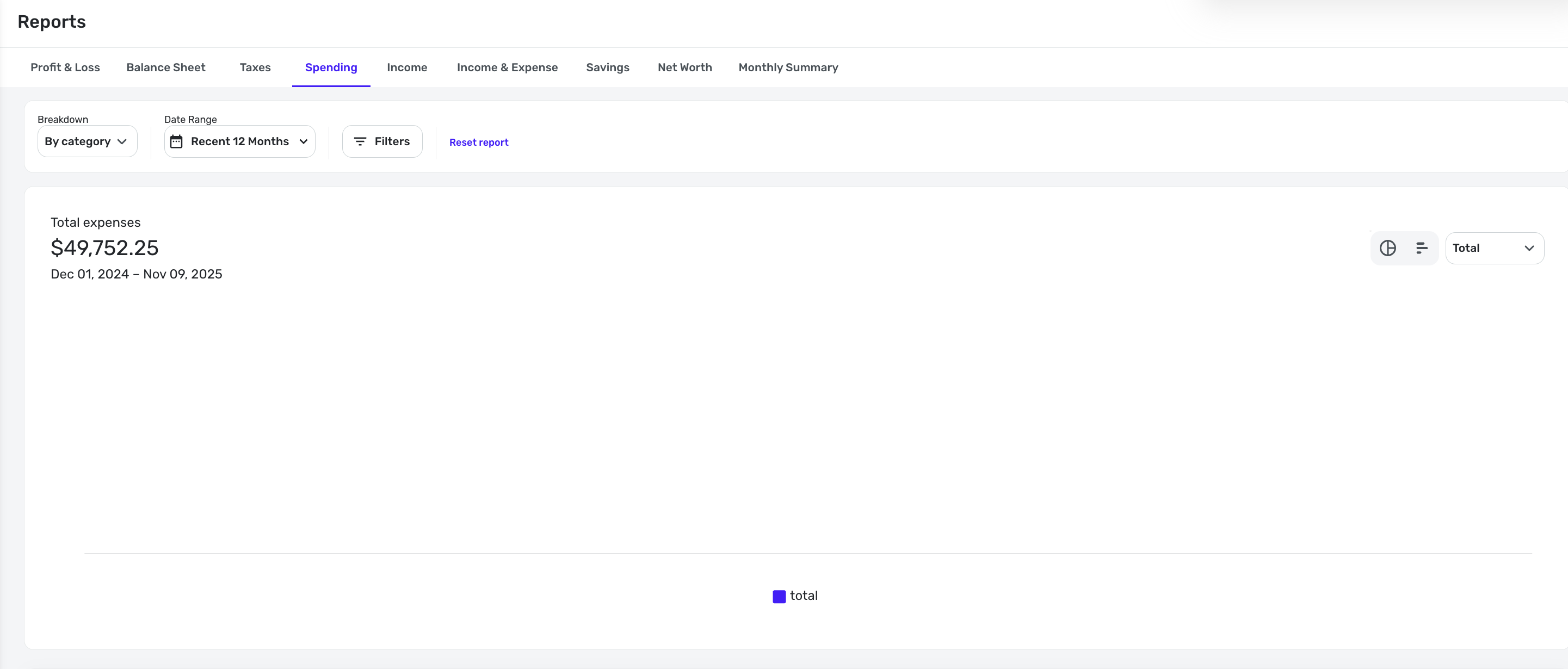 Here's a 12-month example, it's blank here even though there is net spending: