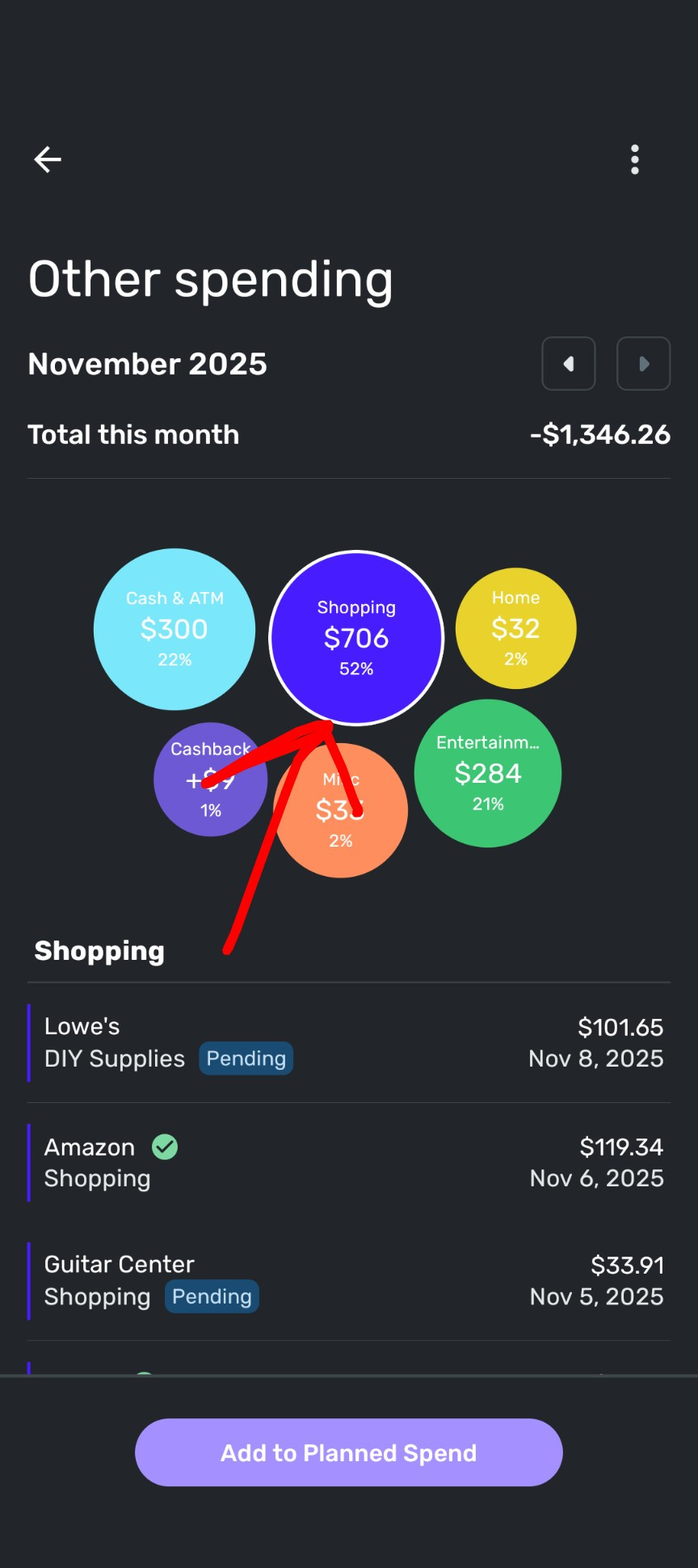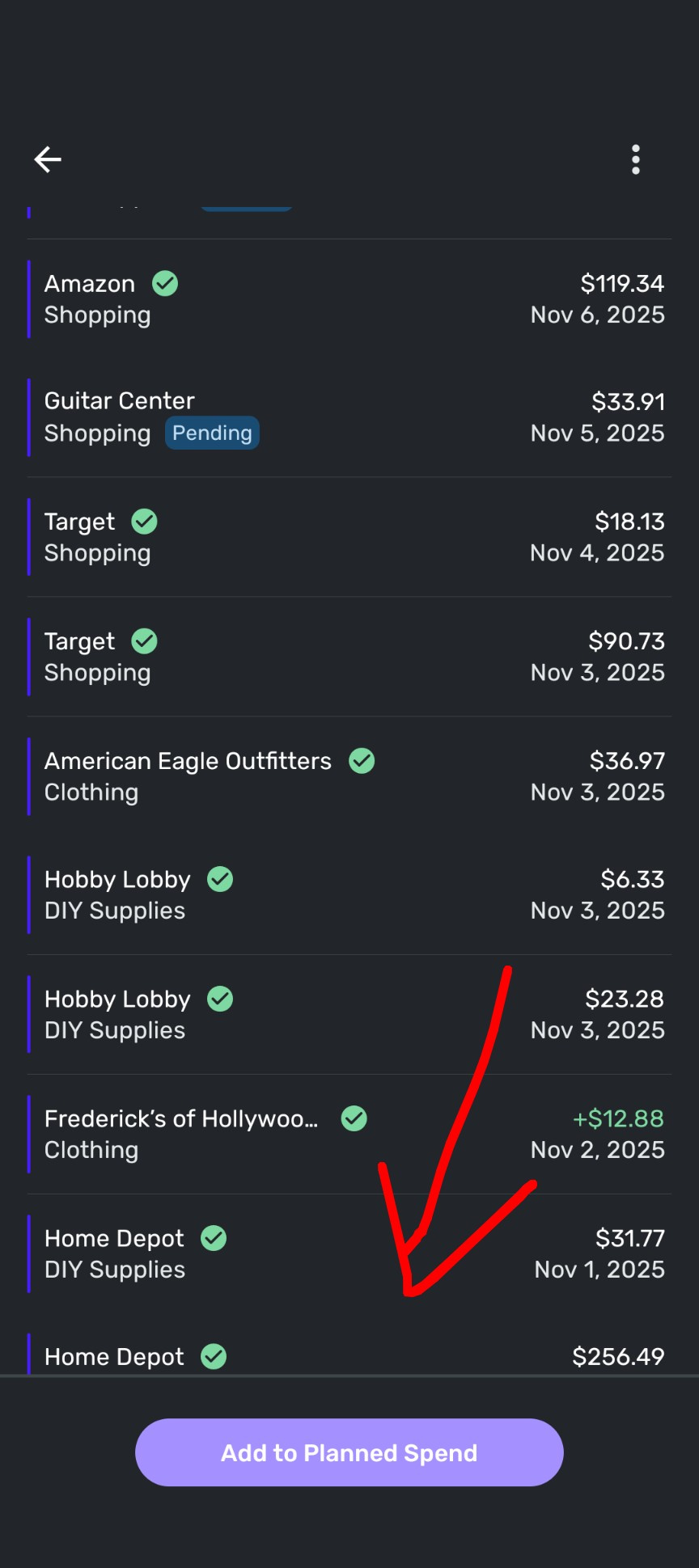 In the Quicken Simplifi Android app, in Spending Plan > Other Spend, when you have a category selected, you can't see the first transaction in that category because the "Add to Planned Spend" button covers it up once you have scrolled to the bottom of the list of transactions.