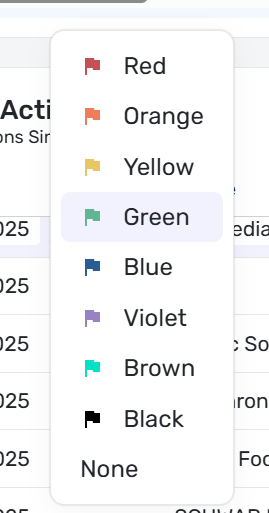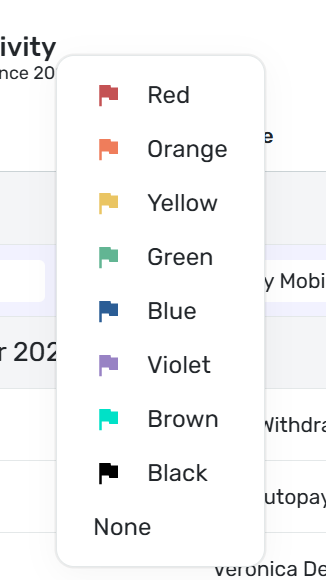Thanks for reaching out! That is quite odd for sure. When I check from my side, I do not see a list of names when selecting a flag color for a transaction. Can you please let me know where the list you posted is located so I can verify what is occurring here?