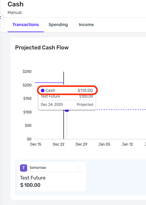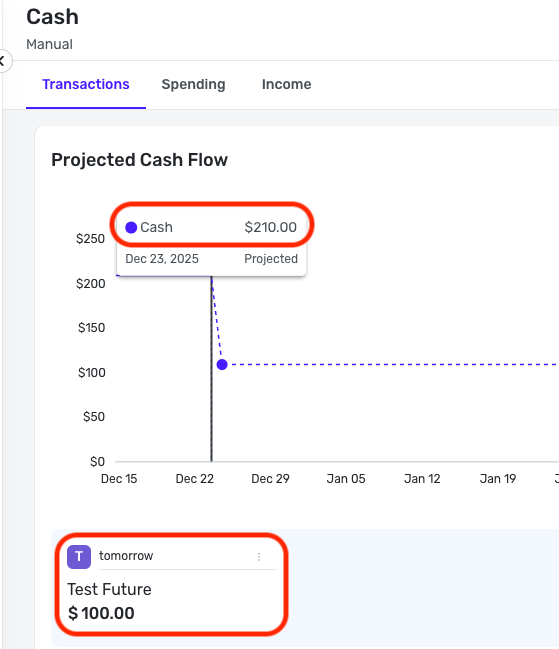 To clarify, when entering a future-dated transaction in Quicken Simplifi, the transaction becomes a reminder, meaning it is part of the "upcoming" model. Only transactions in the account register itself will impact the balance. The future-dated transaction won't impact things until the day of; however, you will see it in Projected Cash Flow as a future balance.