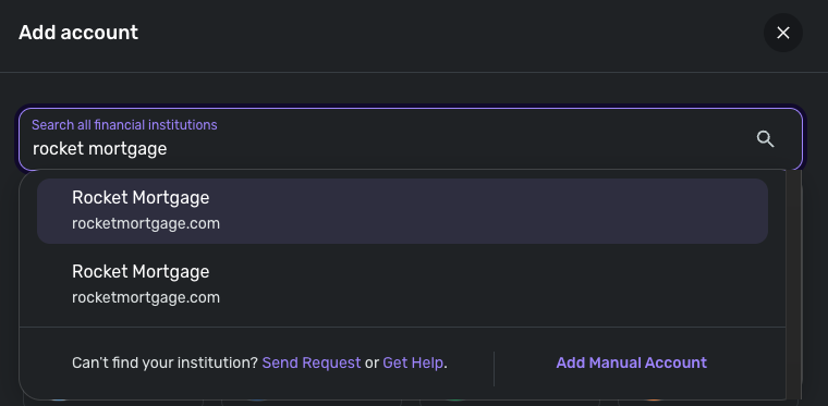 You can follow the steps below and then select the other Rocket Mortgage instance when going through the Add Account flow step.