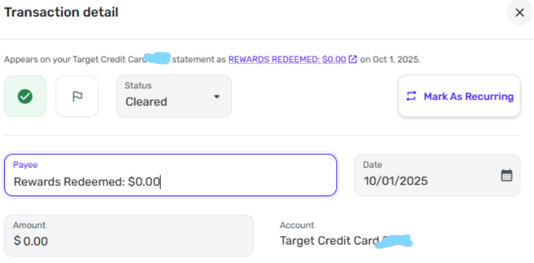 Target Circle Card sync downloads a fake $0 transaction (edited)