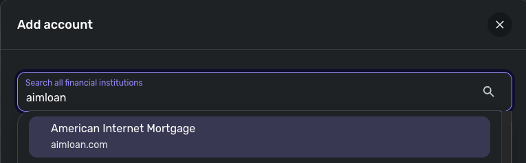 When I check in my Quicken Simplifi, the only financial institution that comes up when I search for Aimloan is American Internet Mortgage. Is that the connection you've been trying to use?