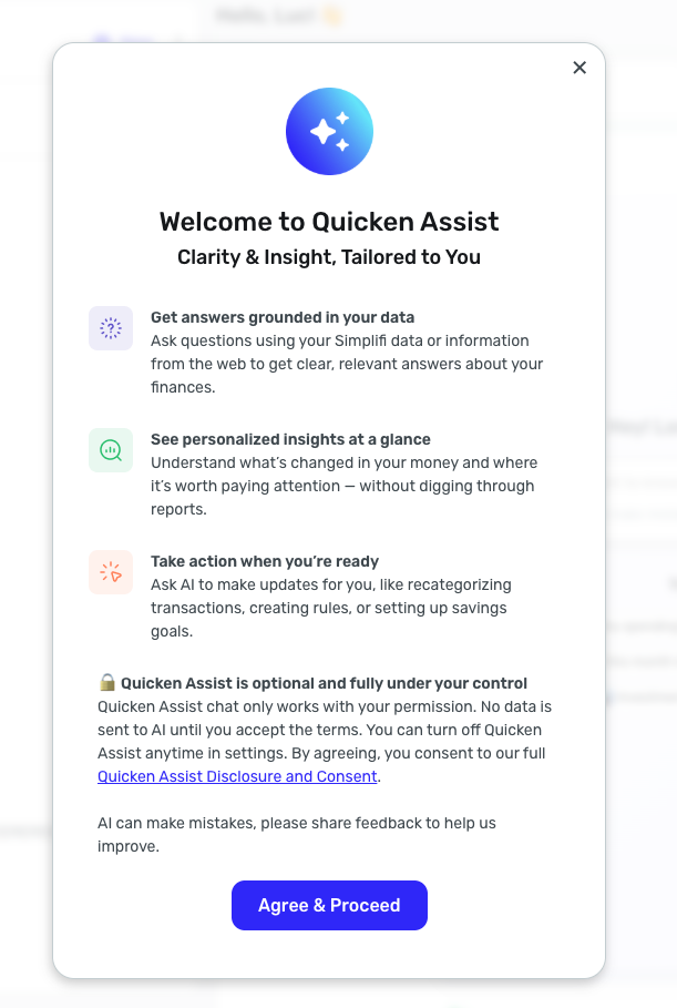 We’re excited to announce that Quicken Assist Chat is now available for 60% of Early Access Basic subscribers on both the Web and Mobile apps! Quicken Assist Chat is an in-product AI chat experience designed to help you understand your finances, explore insights, and complete tasks more efficiently—all by asking questions in natural language.