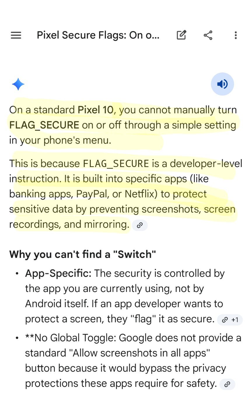Stop disallowing screenshots on Pixel devices or other Android devices