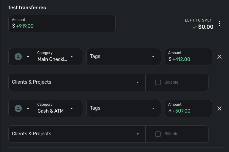 When I deposit multiple checks in my account, and I need to split the total amount of the checks up and apply to separate invoices, the "split" function on Quicken [Simplifi] should do that. However, when I attempt to split the amount, it keeps adding, instead of subtracting the amount of "left to split" thus making it impossible to split the transactions correctly. Seems like an easy fix, but I haven't figured out a workaround yet since the "left to split" section has to be zero, or it won't let the split happen.