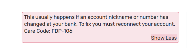 Hi @Coach Jon , nope getting this error after it sends me a 2 step authentication code via SMS. Nothing has changed at my bank, same number, same nickname. I have no issues logging in directly.
