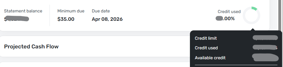After a recent update, all but one of my credit cards show very useful balance and credit information just below the account header, like this: