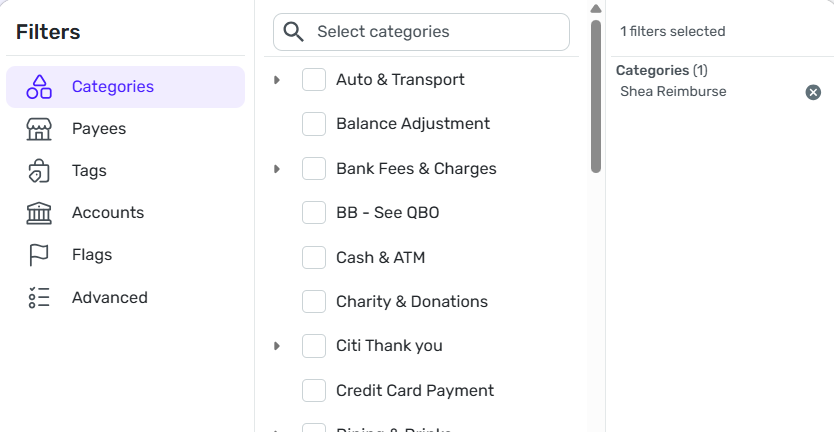 I was going to delete the “reimburse” category so that I don’t use it by mistake.
