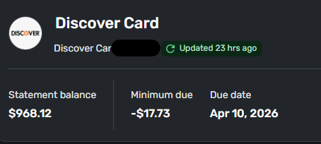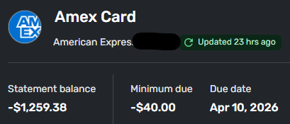 Here's what's really weird - I searched Simplifi for the amount it shows, and that's the amount that my payment was on 3/28/2025! And then I noticed that the due date listed in the new section with the statement balance says 3/28/2025. So it's technically correct, it's just a year off…